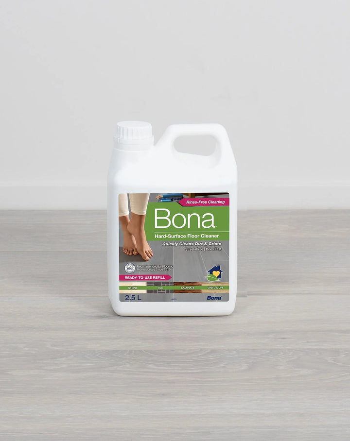 Bona Stone, Tile and Laminate Floor Cleaner is designed to refill the empty cartridge in your Bona Spray Mop. It's specifically formulated for cleaning sealed hard surface floors including ceramic tiles, laminate, linoleum, vinyl, LVT, polished concrete, stone and marble. This environmentally responsible cleaner concentrate is PH neutral and leaves no residue so will not dull the floor.Â