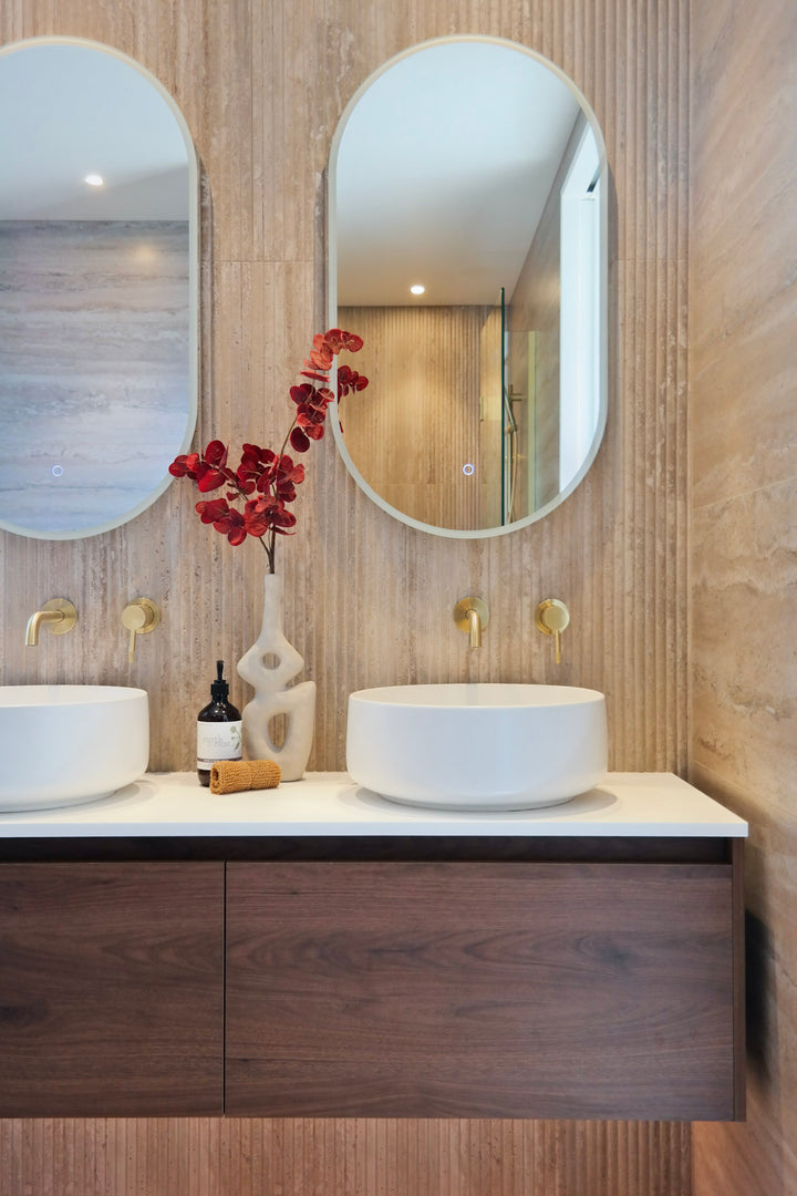 The Canal Roma Noce tile from Porcelanosa’s Roma collection draws inspiration from the timeless beauty of ancient Roman travertine, reimagined with a contemporary, textural edge. Presented in a warm Noce tone, this elegant series includes 596×1200mm porcelain floor tiles and coordinating 450×1200mm wall tiles, offering seamless design continuity throughout the space. The standout feature, the Canal Roma relief, introduces sculptural linear detailing that adds depth and tactile interest, creating refined, architectural interiors with a warm, natural sophistication.