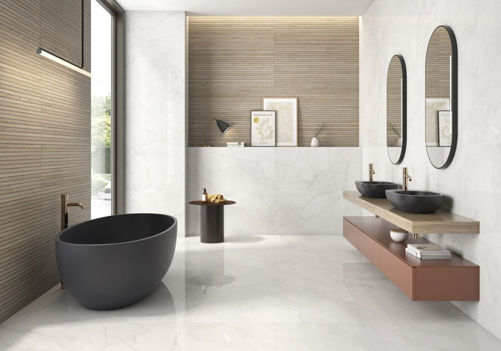 Cronos Blanco offers a fresh, contemporary interpretation of classic marble elegance, featuring a soft white porcelain base enriched with delicate veining and a refined matte or polished finish. Its clean, luminous appearance brings a sense of calm and sophistication to bathrooms, kitchens, and open-plan living areas, making it an ideal choice for modern New Zealand interiors seeking timeless style with practical performance. Durable, low-maintenance, and beautifully versatile, Cronos Blanco pairs seamlessly with a wide range of design palettes, enhancing any space with understated luxury. Available in two colours—Blanco and Marfil—the Cronos collection reimagines historical stone beauty for today’s homes and commercial environments.