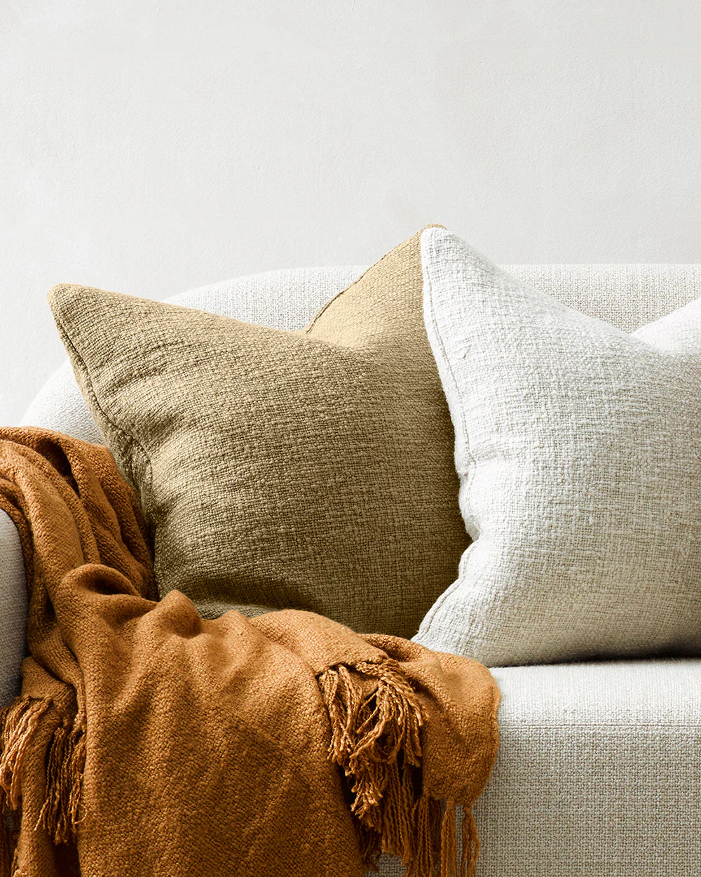 Calming camel tones handwoven from thick slub yarns, the Cyprian’s softness, artisan aesthetic and rustic texture makes it perfect for creating inviting and contemporary spaces.