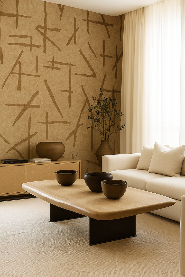 The result is a sophisticated wallcovering that combines organic texture with modern elegance, ideal for creating statement feature walls in living spaces, bedrooms, and boutique interiors.