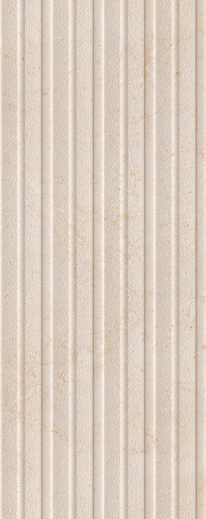 The Dorcia Line Bone tile introduces a sculptural, design-forward element to the Dorcia collection with its elegant concave and convex linear pattern. Inspired by carved limestone and finished in a warm Bone tone, this feature tile adds depth, movement, and architectural sophistication to interior walls. Its matte surface and subtle shadow play create a refined contemporary look, perfect for bathrooms, living spaces, and commercial environments seeking a modern yet timeless statement. Available as an indent special order, Dorcia Line Bone pairs beautifully with the matching plain wall tiles to deliver a cohesive and elevated design scheme.