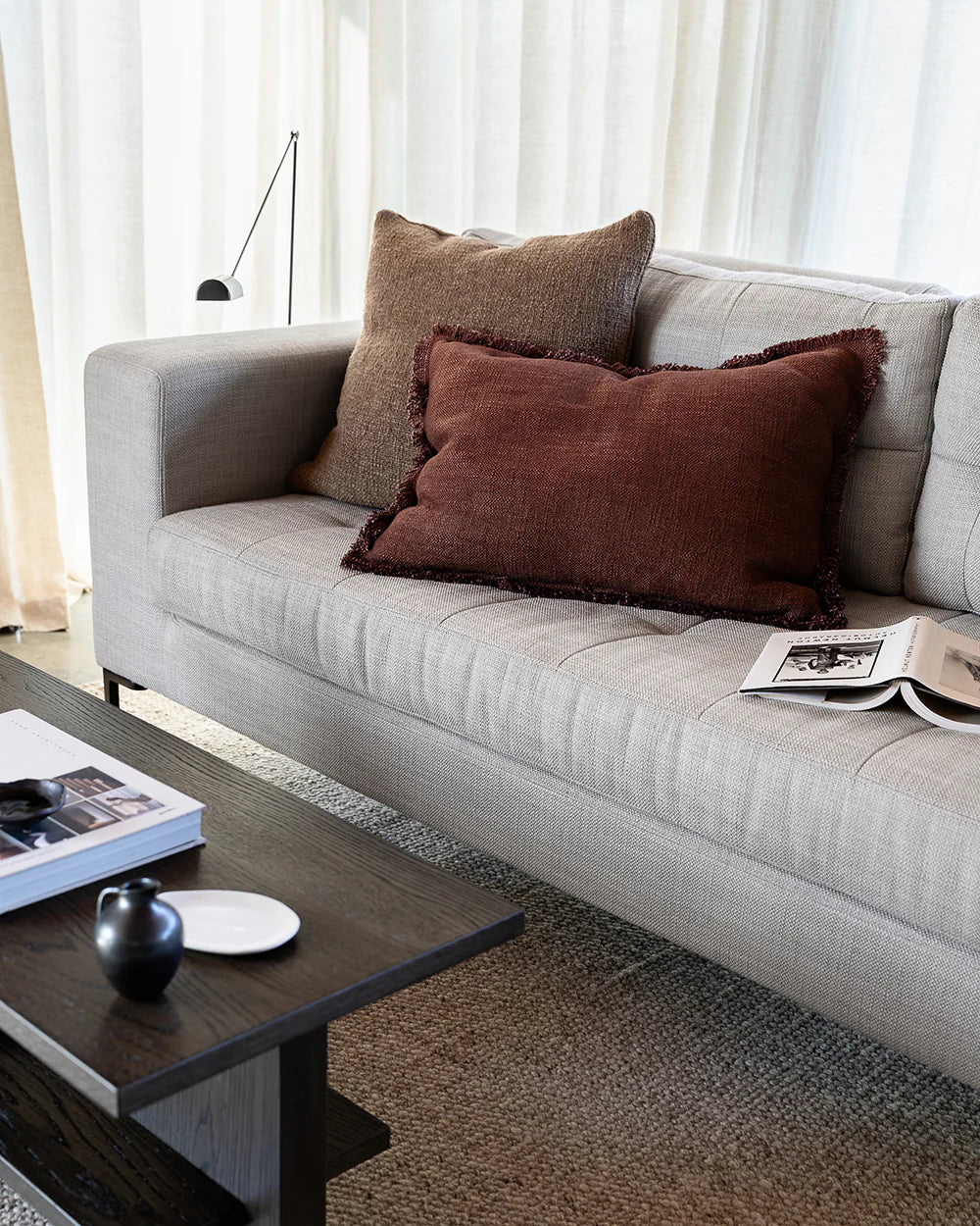 Invite rich brick tones into your interior with the understated design of the Dover lumbar cushion. Crafted from thick strands of yarn, the simple weave and soft, fringed edging adds an inviting touch of texture and colour to your space.