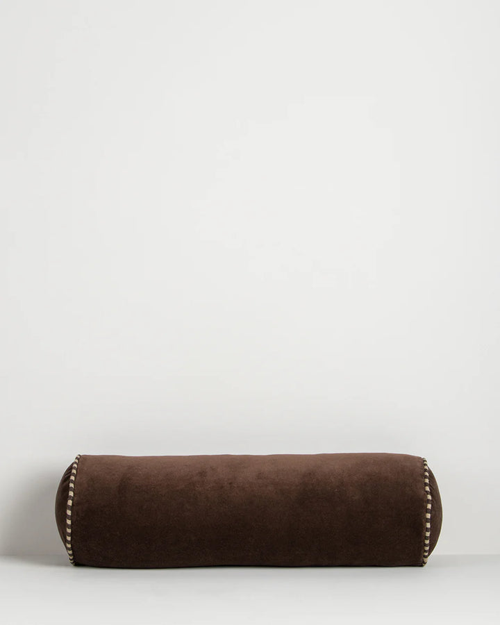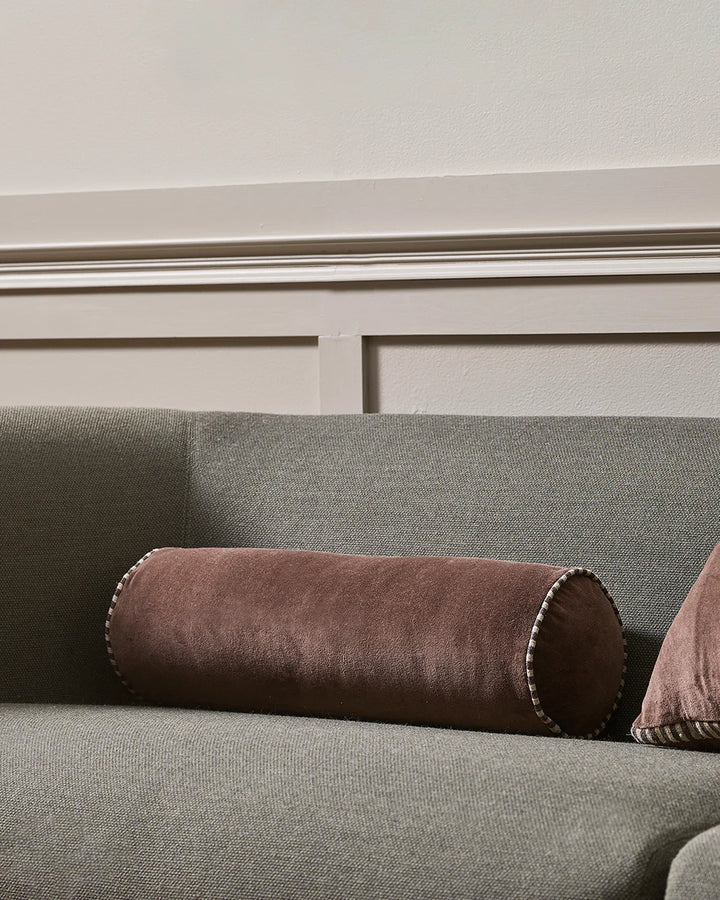 Create an alluring, sophisticated space with the sculptural form of the Elliot Bolster Cushion. Its cylindrical shape brings a sense of dimension and softness, while the plush cotton velvet and striped linen-cotton piping offer a refined interplay of texture and detail. Perfect for layering, Elliot elevates sofas, armchairs, and beds with a touch of understated luxury.