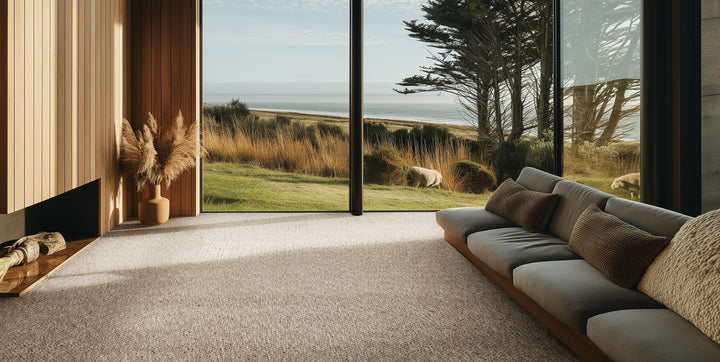 The Glenburn Wool Carpet by Bremworth, available at Nextdore Interiors, brings the serene beauty of New Zealand’s coastlines into the home. Its muted, nature-inspired palette is thoughtfully curated to reflect the subtle nuances of coastal landscapes — from the soft greys of early morning sea mist to the warm beige tones of sun-lit sands.