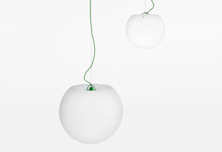 Crafted from rotational-moulded polyethylene, the Happy Apple 331E emits a soft, diffused light that enhances any space with warmth and atmosphere. Its clever design allows it to be used as either a floor lamp or a suspended pendant, adapting effortlessly to a variety of settings — from contemporary living rooms to terraces, gardens, and hospitality spaces.