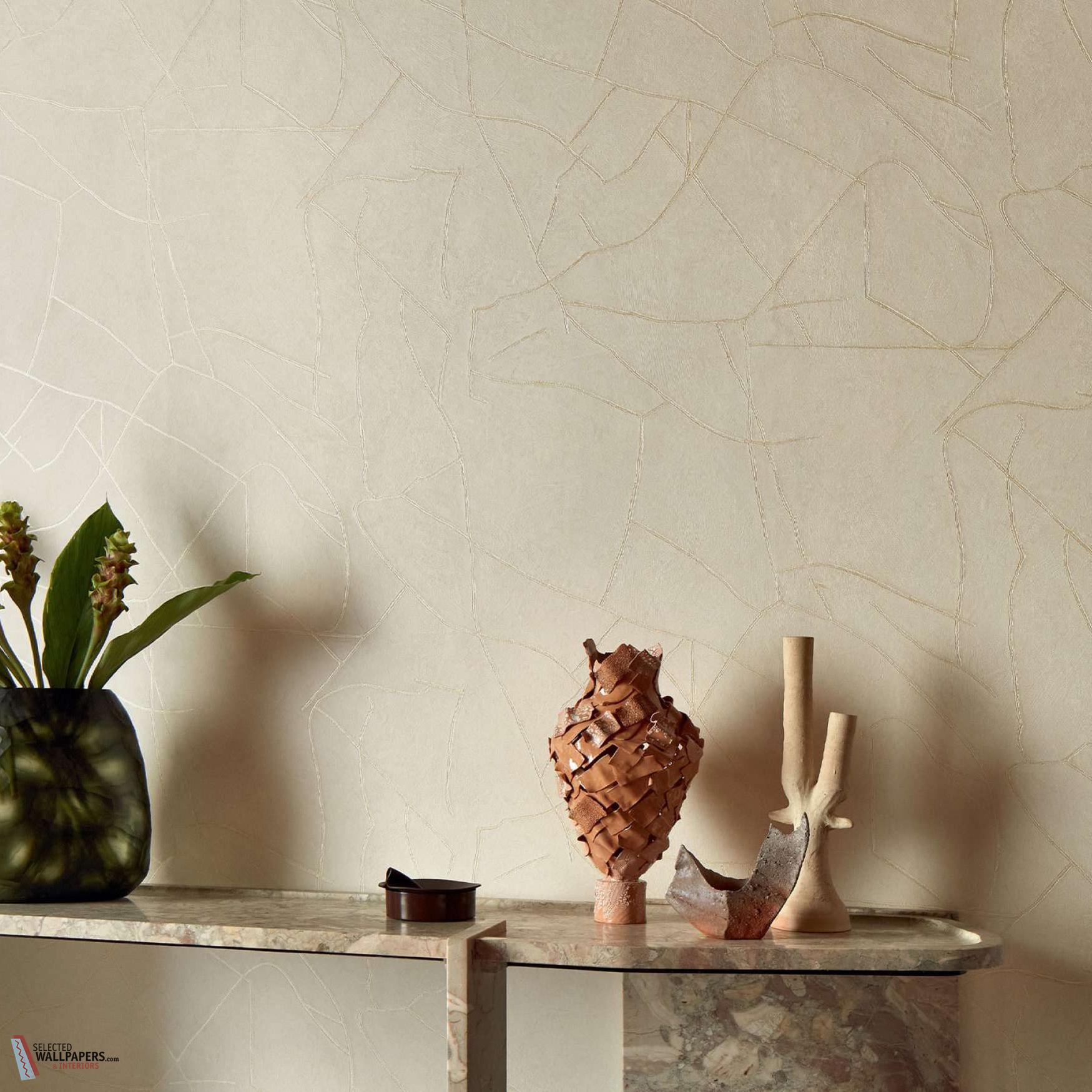 The Kintsugi Wallpaper by Élitis is an ode to the Japanese philosophy of beauty through imperfection — the art of repairing what is broken with gold to reveal new strength and beauty. This collection reinterprets that concept through plaster-like textures and metallic veins that flow unpredictably across the surface, creating a serene yet striking visual rhythm.