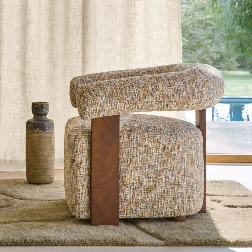 The Merapi Fabric by Camengo, brings together natural charm, colour artistry, and sustainable design. Woven with flamed, multicoloured chenille yarns, this tweed-look fabric has a lively, tactile texture with subtle irregularity, giving it a rich, handcrafted appearance that feels both organic and modern.