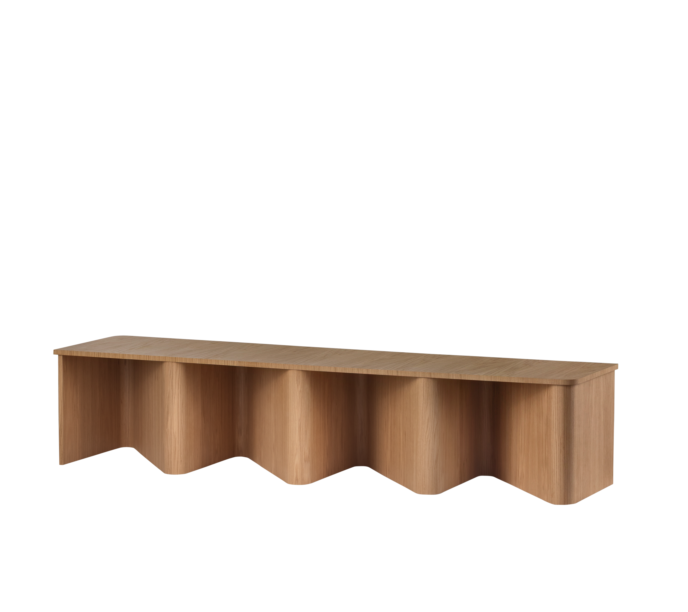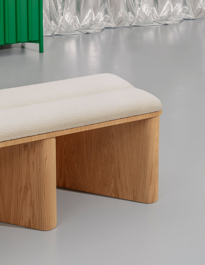 The Nami Bench by Miniforms embodies the beauty of craftsmanship and the poetry of movement. Its name — Nami, meaning “wave” — echoes the elegant, sinuous curves of its bent-wood base, shaped with precision and care by skilled Italian artisans.