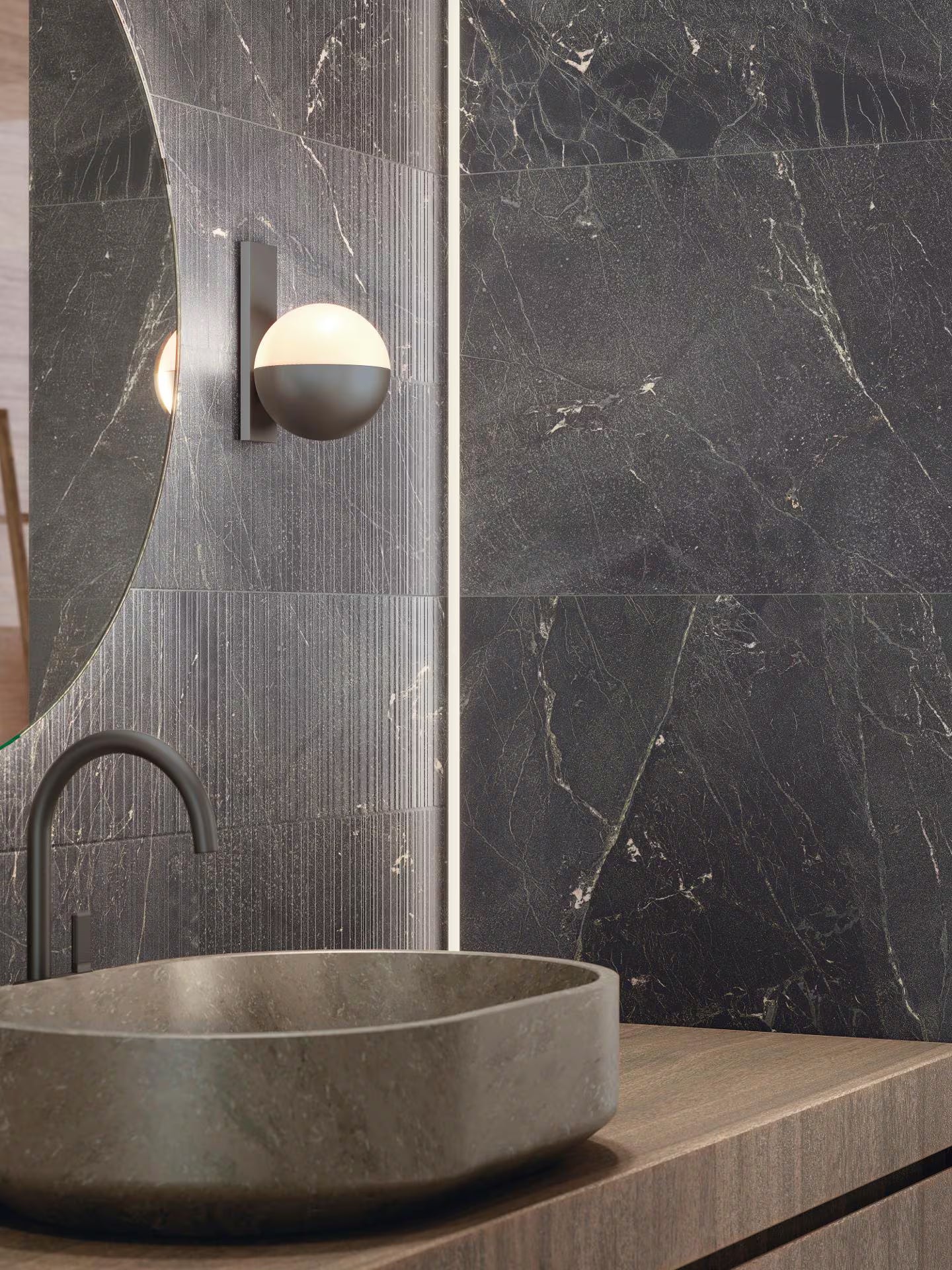 The Nolita Marquina tile forms part of Porcelanosa’s New York Series, showcasing a timeless black marble aesthetic with refined white veining and a subtle textured relief. Designed in a contemporary 800×800 format with matching plain wall tiles and decorative options, Nolita Marquina delivers a bold yet elegant look ideal for bathrooms, kitchens, entryways, and sophisticated commercial spaces. This striking black-and-white series offers enduring style, combining the luxury of marble with the durability and low maintenance of premium porcelain—perfect for creating dramatic, design-led interiors.