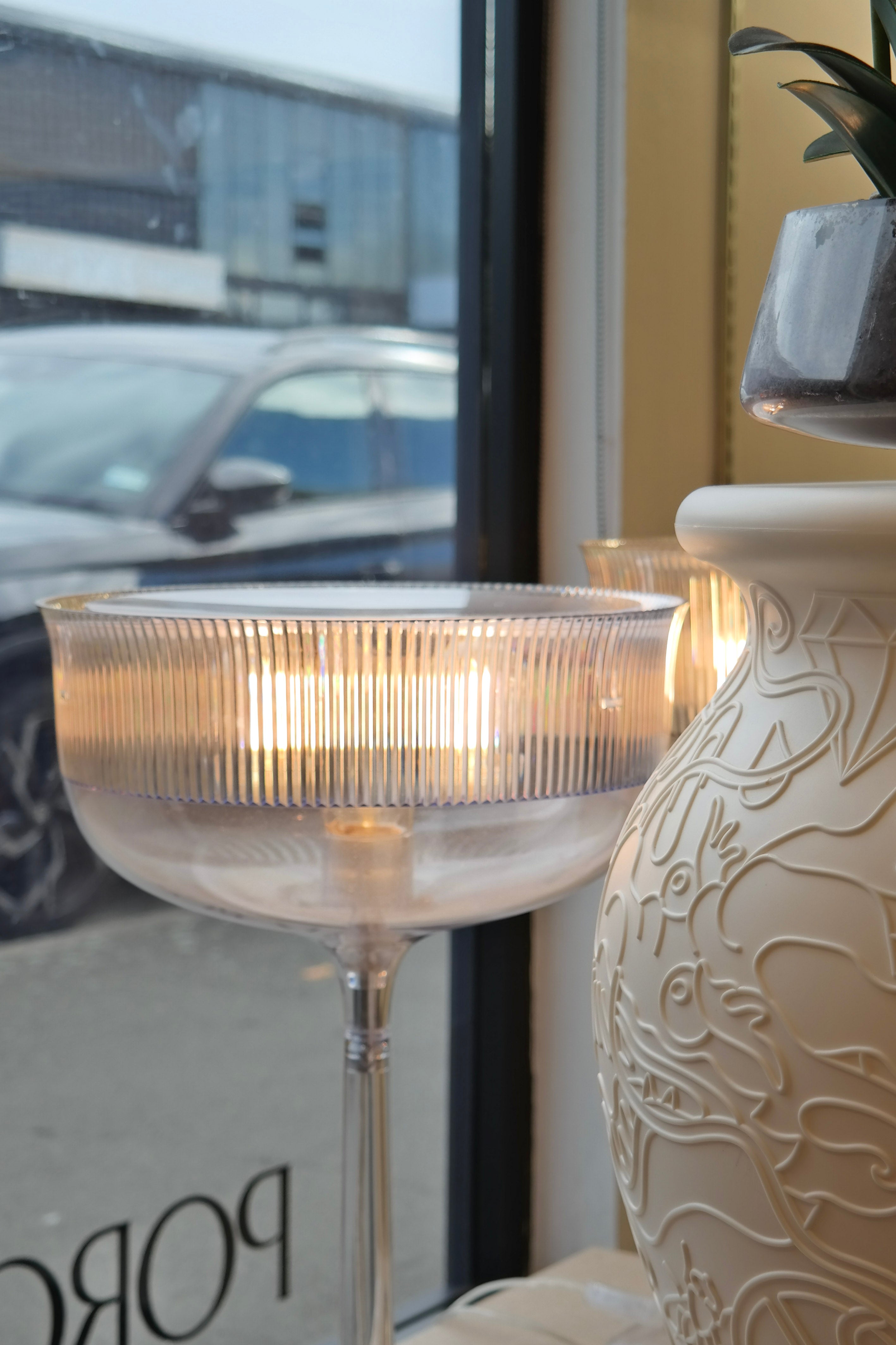 The classic crystal flute glass is taken out of scale to become a table lamp that would enrich your everyday with the charm of the antiques. Cheers to elegance!