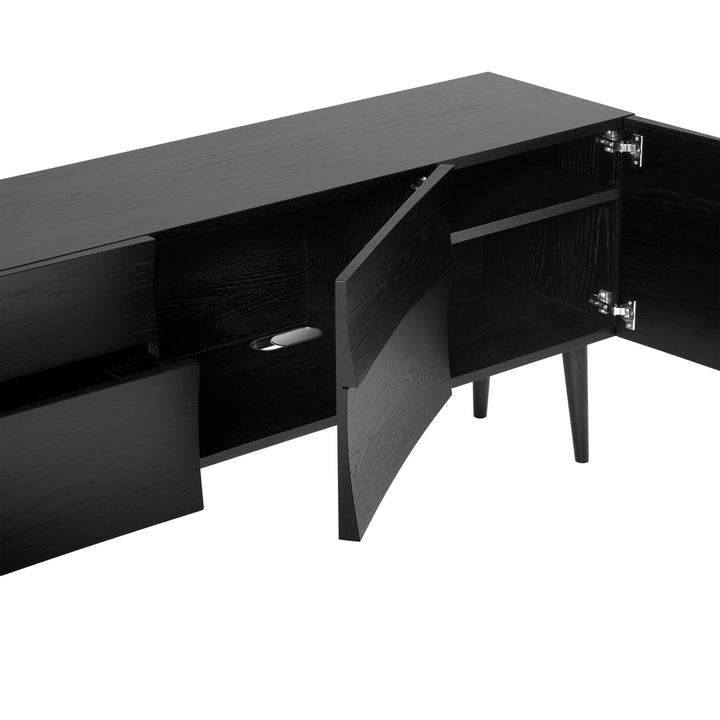 Mid-century inspired with a modern, sculptural profile. Provides ample storage with internal shelving for versatile organisation.