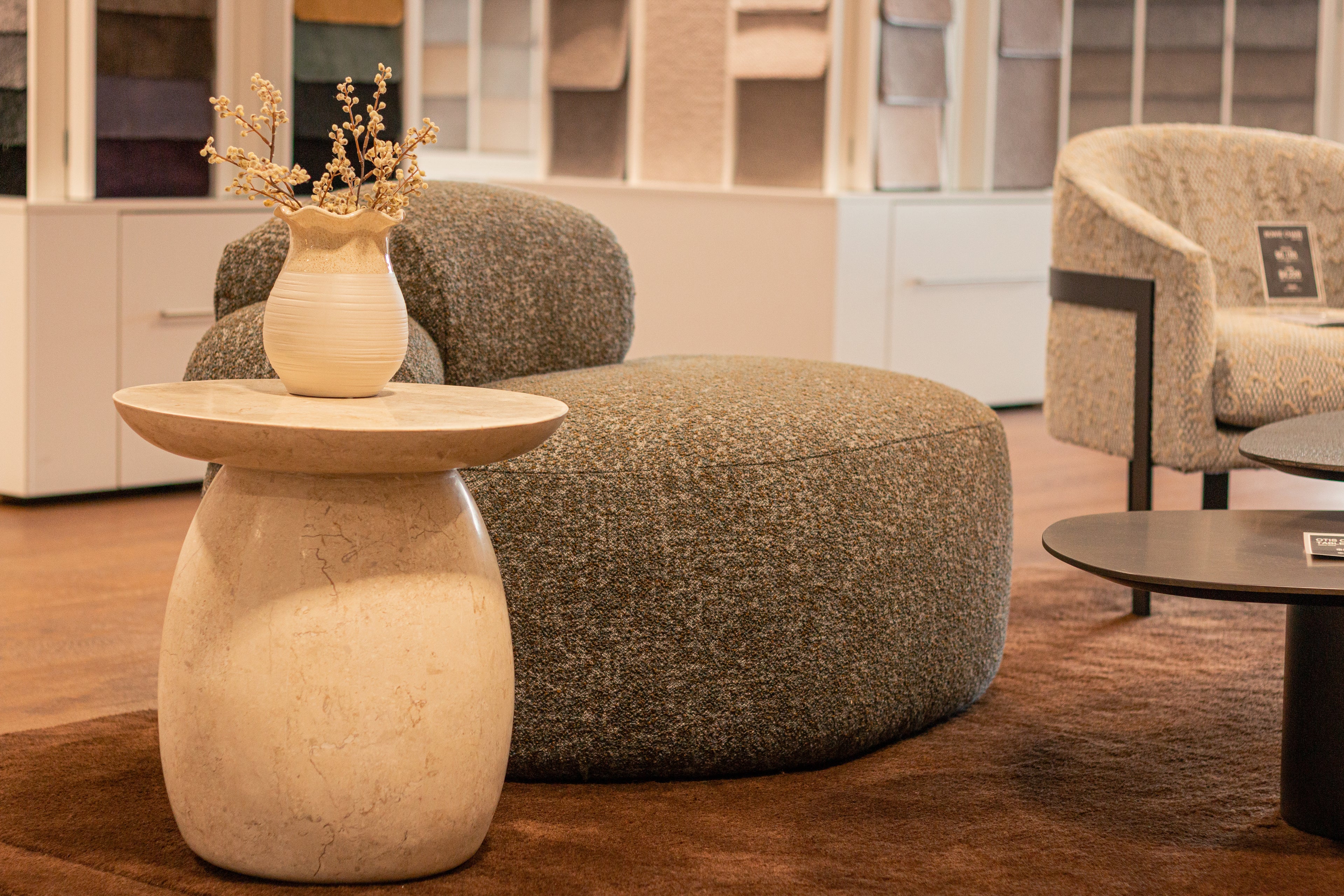 The Boulder Chair is meticulously layered with foam shapes to create its signature stacked effect, evoking the visual rhythm of natural stone while ensuring exceptional comfort and support. Its bold, rounded silhouette makes it a striking focal point for modern living spaces, boutique interiors, and design-led environments seeking both creativity and craftsmanship.