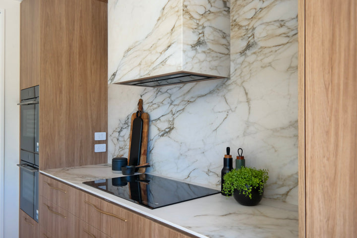Available at Nextdore, this marble-inspired porcelain slab combines European craftsmanship with modern innovation, bringing timeless Calacatta elegance to New Zealand interiors that demand enduring style and substance.