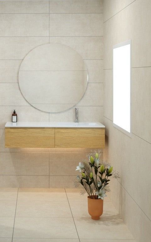 The Zero Arena RLV Decorator Tile brings sculptural texture and minimalist elegance together in a striking architectural feature tile. Designed in Spain to complement the ZERO Arena porcelain range, this decorative panel features a refined linear relief pattern that adds depth, movement, and visual interest while maintaining the collection’s signature ultra-matte, contemporary finish. Its warm, sand-toned Arena base creates a soft, calming foundation, making it ideal for bathrooms, kitchens, entryways, and feature walls where subtle sophistication is key. Crafted with advanced porcelain technology for durability and effortless maintenance, the Zero Arena RLV Decorator Tile offers designers and homeowners a modern, cohesive way to elevate interior spaces with texture, tone, and timeless style.